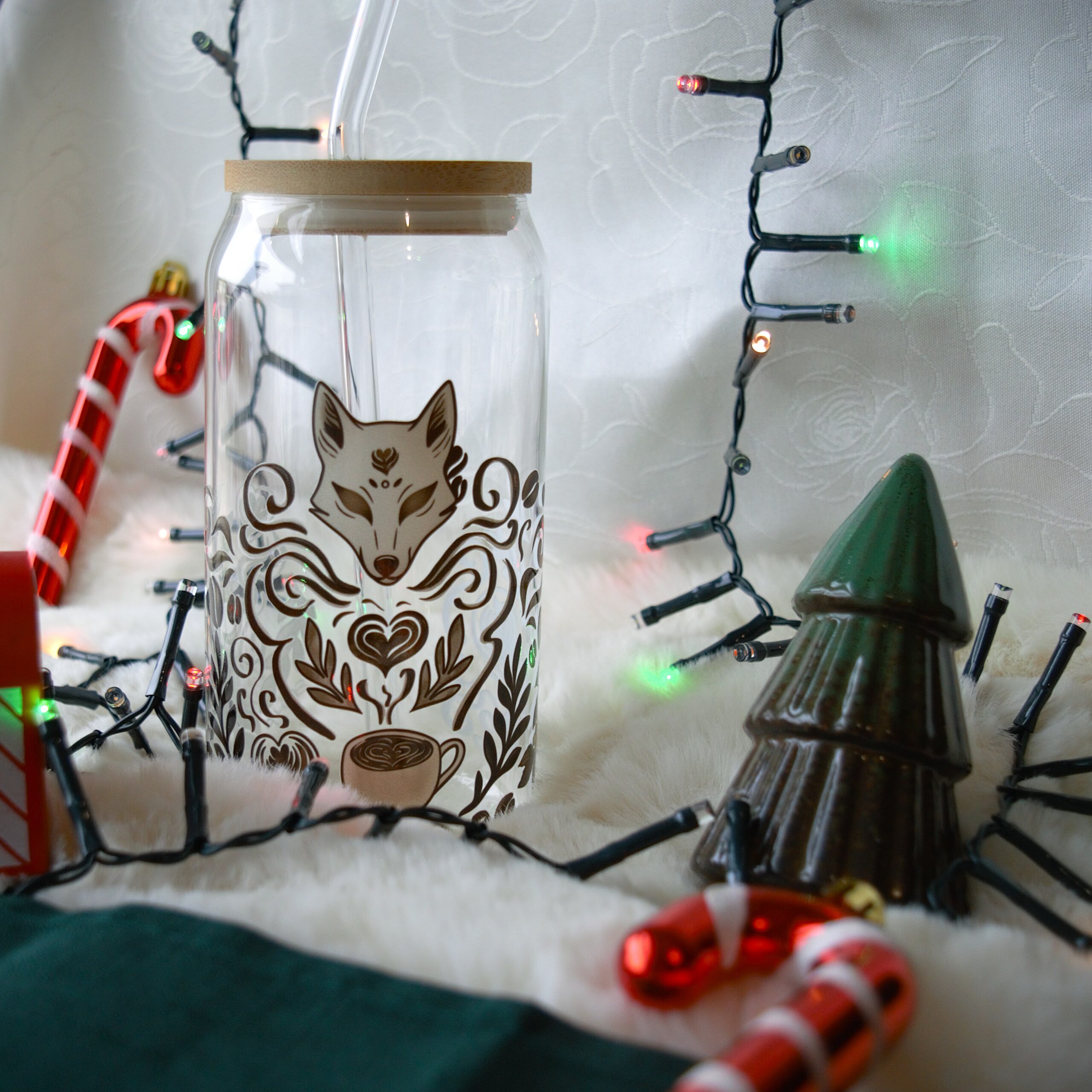 Découvrez Coffee Fox, le design EXTRA Fox décliné sur une cup écolo au format canette en verre avec paille ♻️✨.