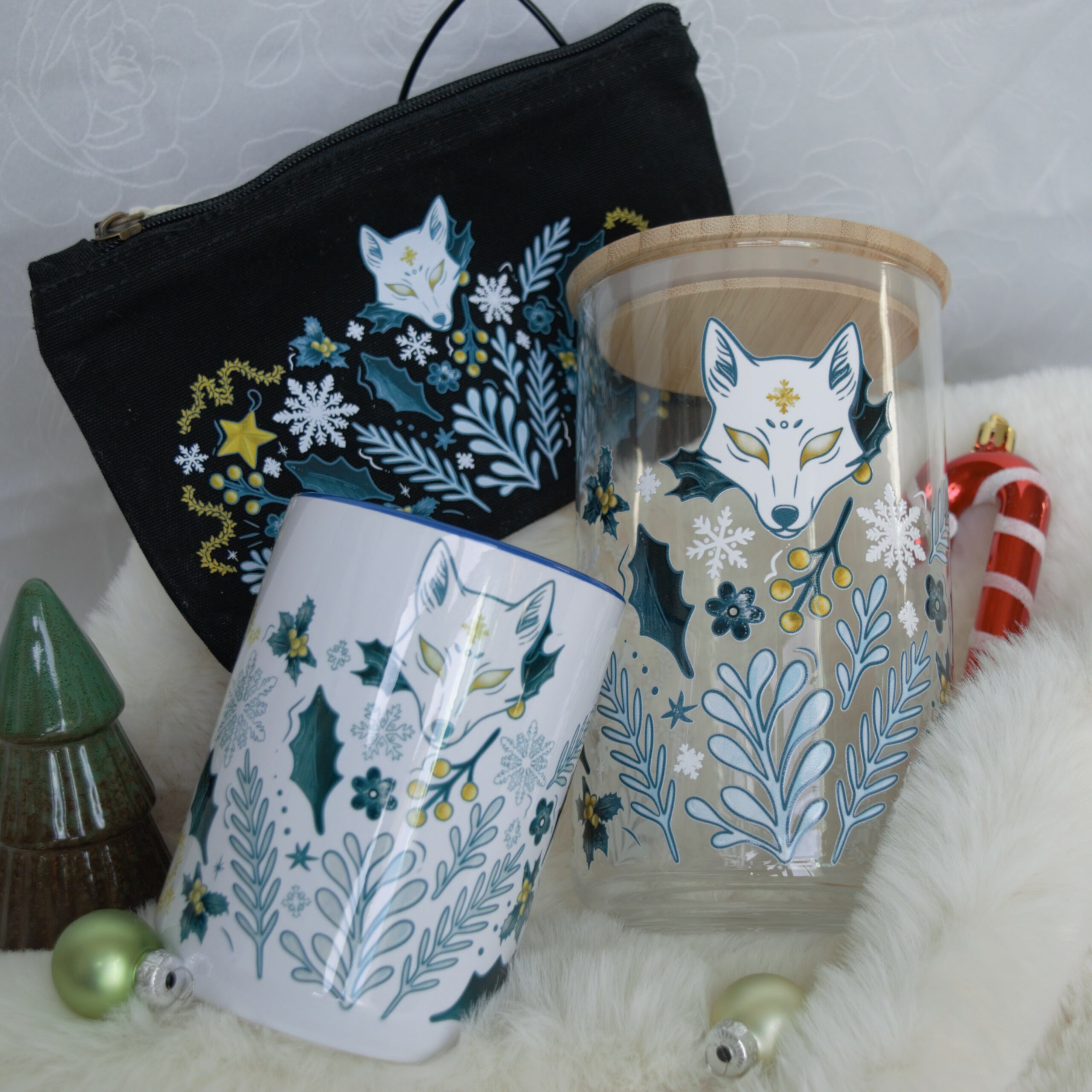 Sur ton mug, ta pochette et ton pot à friandises, une typographie joyeuse et festive vient célébrer la complicité entre toi et ton animal pendant cette saison cocooning.