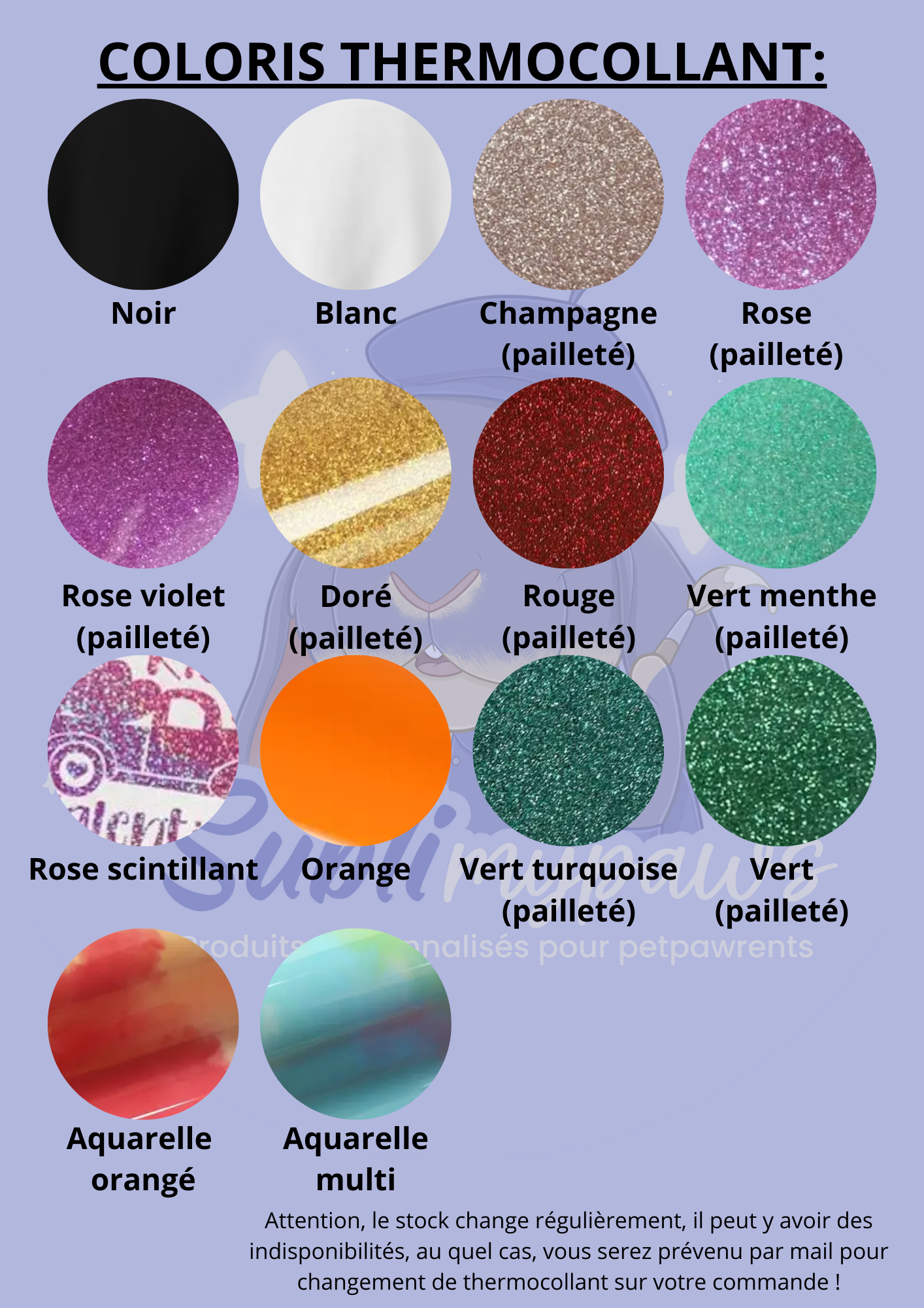 Vous pouvez choisir parmi plusieurs coloris de thermocollants : doré, argent, blanc, noir, rose gold… Une vraie liberté créative pour un rendu qui vous ressemble totalement 🎨