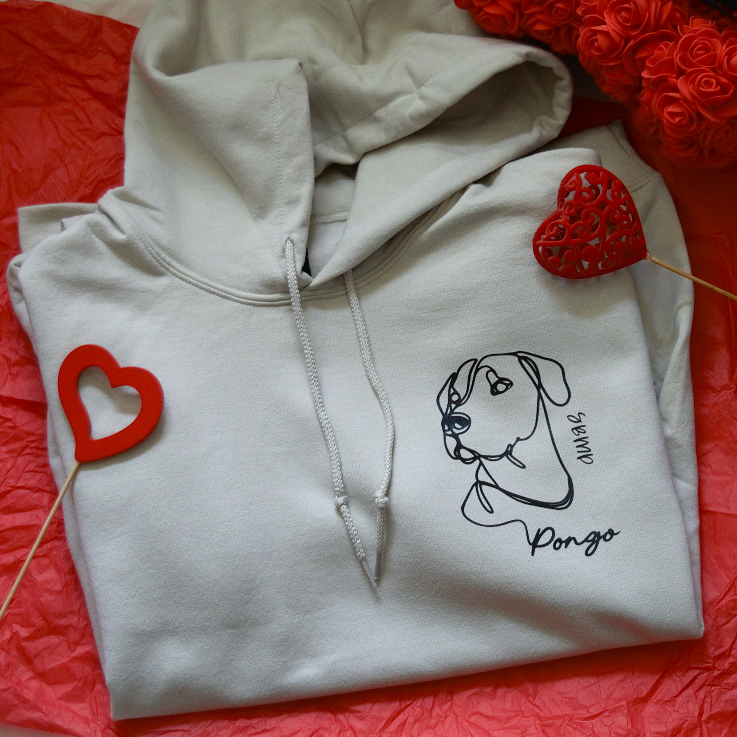 Affichez l’amour que vous portez à votre animal… ou simplement votre goût pour le design minimaliste ✨ Ce sweat à capuche personnalisé est orné d’un line art (ou one line) réalisé spécialement à partir de la photo de votre compagnon. Un vêtement unique, moderne et chargé d’émotion ❤️