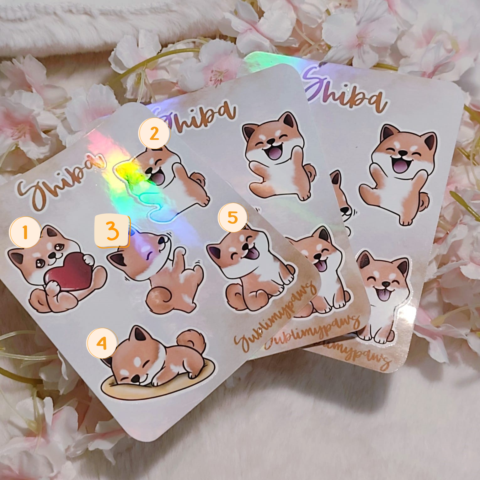 • 🐾 5 stickers différents représentant un chien de race Shiba